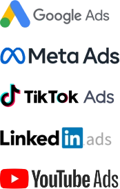 Creamos y configuramos campañas optimizadas en Meta, Google, TikTok, YouTube, y LinkedIn.
